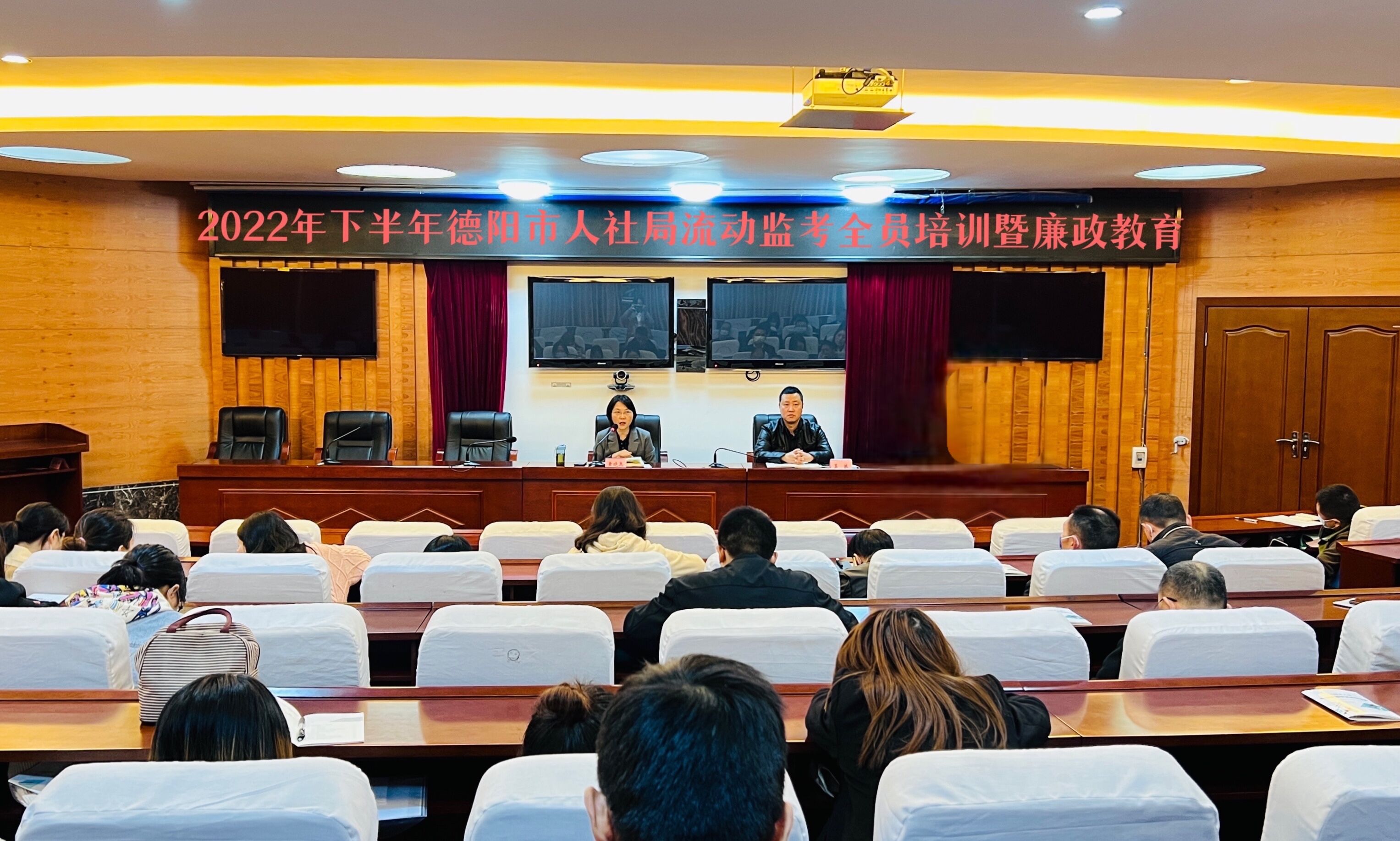 10月27日,德阳市人事考试中心组织召开2022年下半年德阳市人社局流动监考全员培训暨廉政教育会,学习贯彻全省人事考试视频会议精神。市人社局总会计师黄晓兵,市人事考试中心主任吴越出席会议。会议组织全局考务人员集中观看学习“监考实务(专业技术人员职业资格考试)”培训视频,并结合省中心相关要求对风险环节点进行梳理,作出针对性的安排部署。